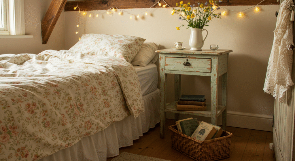 Vintage finds are the beating heart of any authentic cottagecore room. Your local thrift shops, flea markets, and online secondhand apps are goldmines for unique furniture pieces like weathered wooden side tables, ornate antique mirrors, or delicate floral teacups. The beauty of this decor style lies in mixing old treasures with newer pieces, creating layers of history that tell your story while keeping your budget happy.
