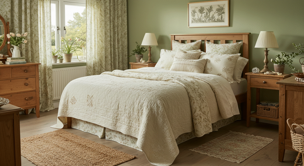 Florals are the signature element that instantly transforms any space into a cottagecore room. Introduce them through flowing curtains, plump pillow covers, or vintage quilts draped over your bed. You don’t need to purchase everything new—try your hand at sewing your own pieces or lovingly repurpose old linens for that personal, handmade touch that makes your space uniquely yours.